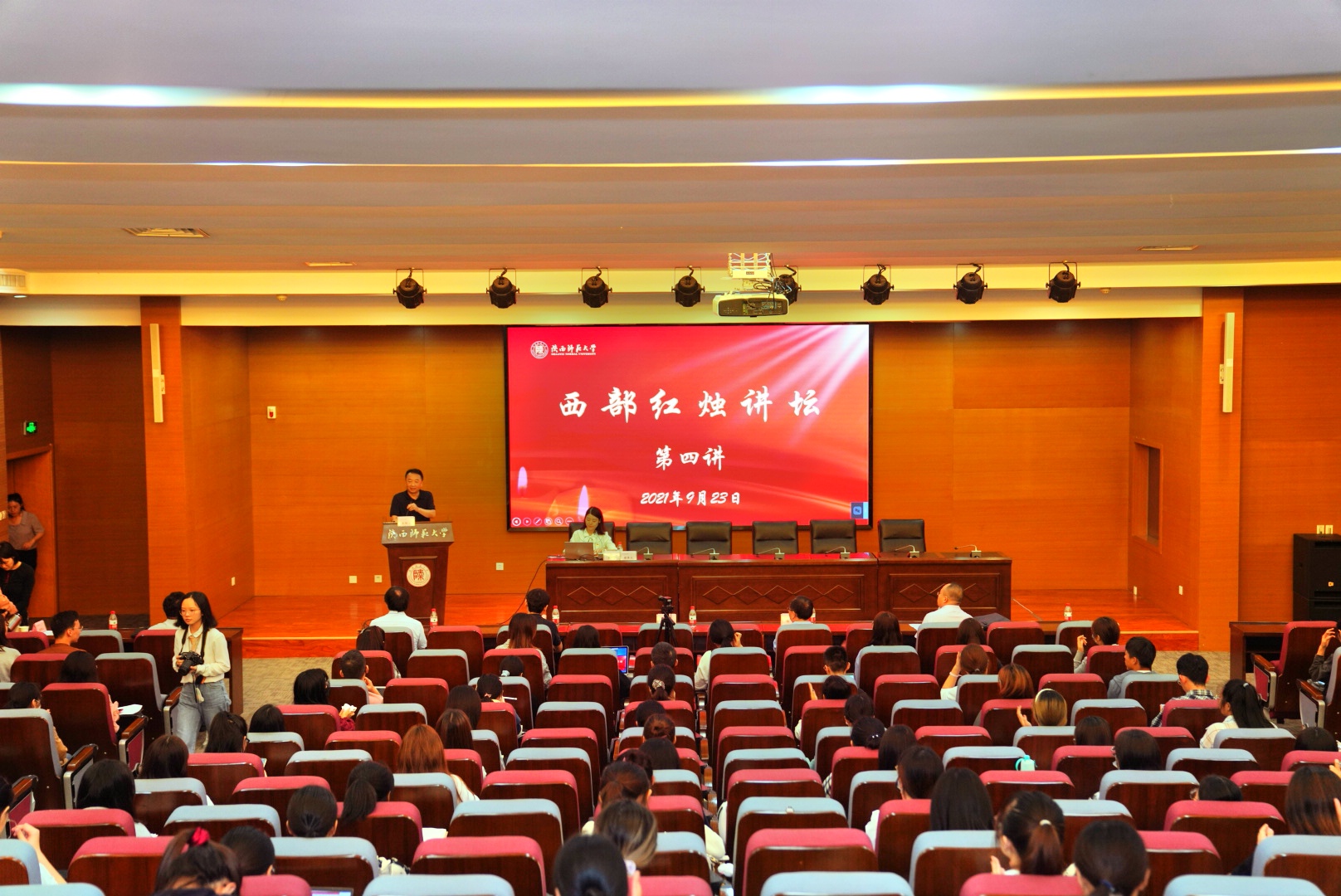 9月23日晚,我校第四期“西部红烛讲坛”在长安校区文汇楼C段二层报告厅举行。“2021最美教师”、我校2012届公费师范生张莎莎担任主讲,为我校师生作了题为“幸福是奋斗出来的”的报告。党委副书记卢胜利出席并主持,教师教育处、化学化工学院主要负责人及师生代表90余人参加了报告会。