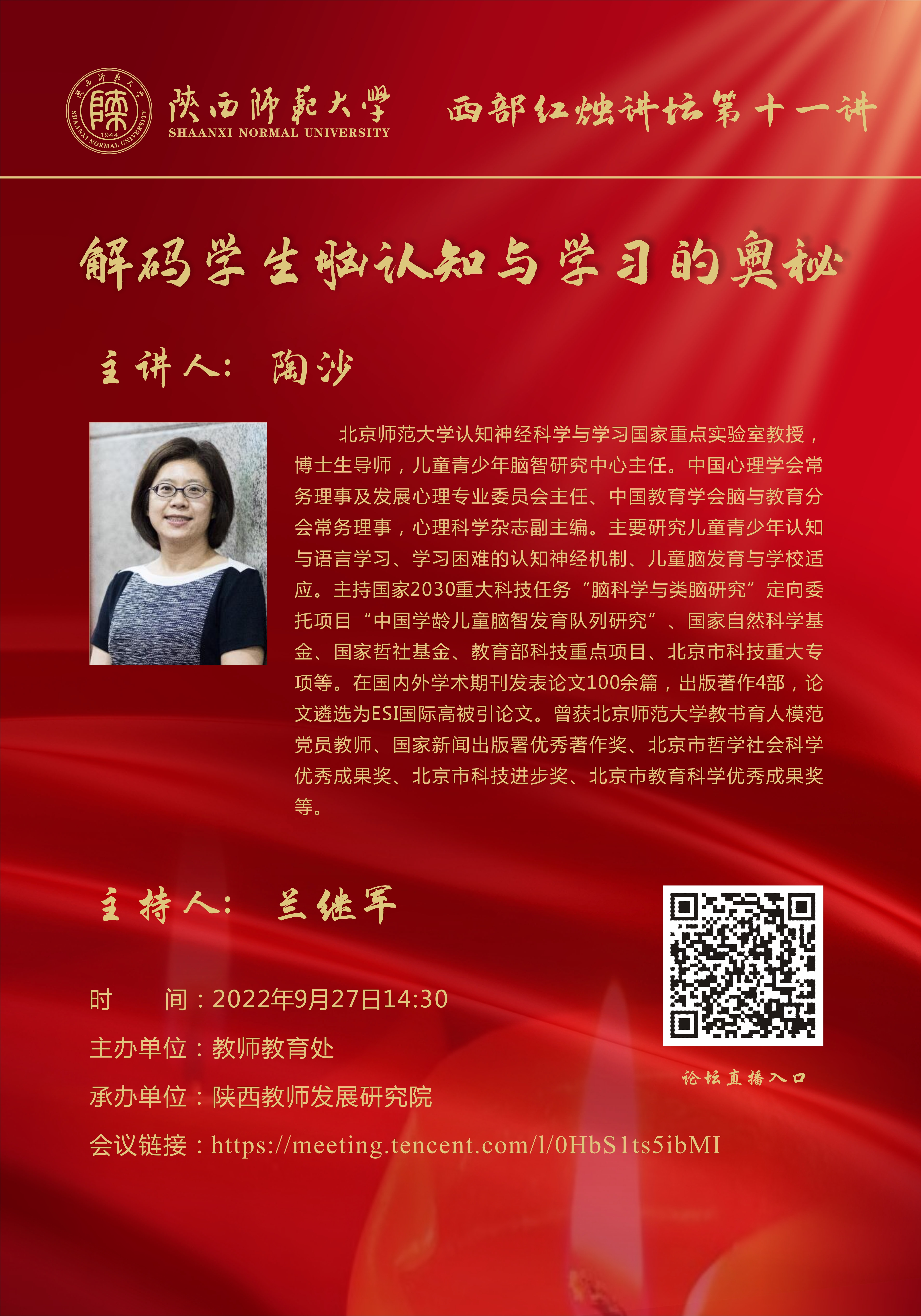 西部红烛讲坛第十一讲——解码学生脑认知与学习的奥秘
