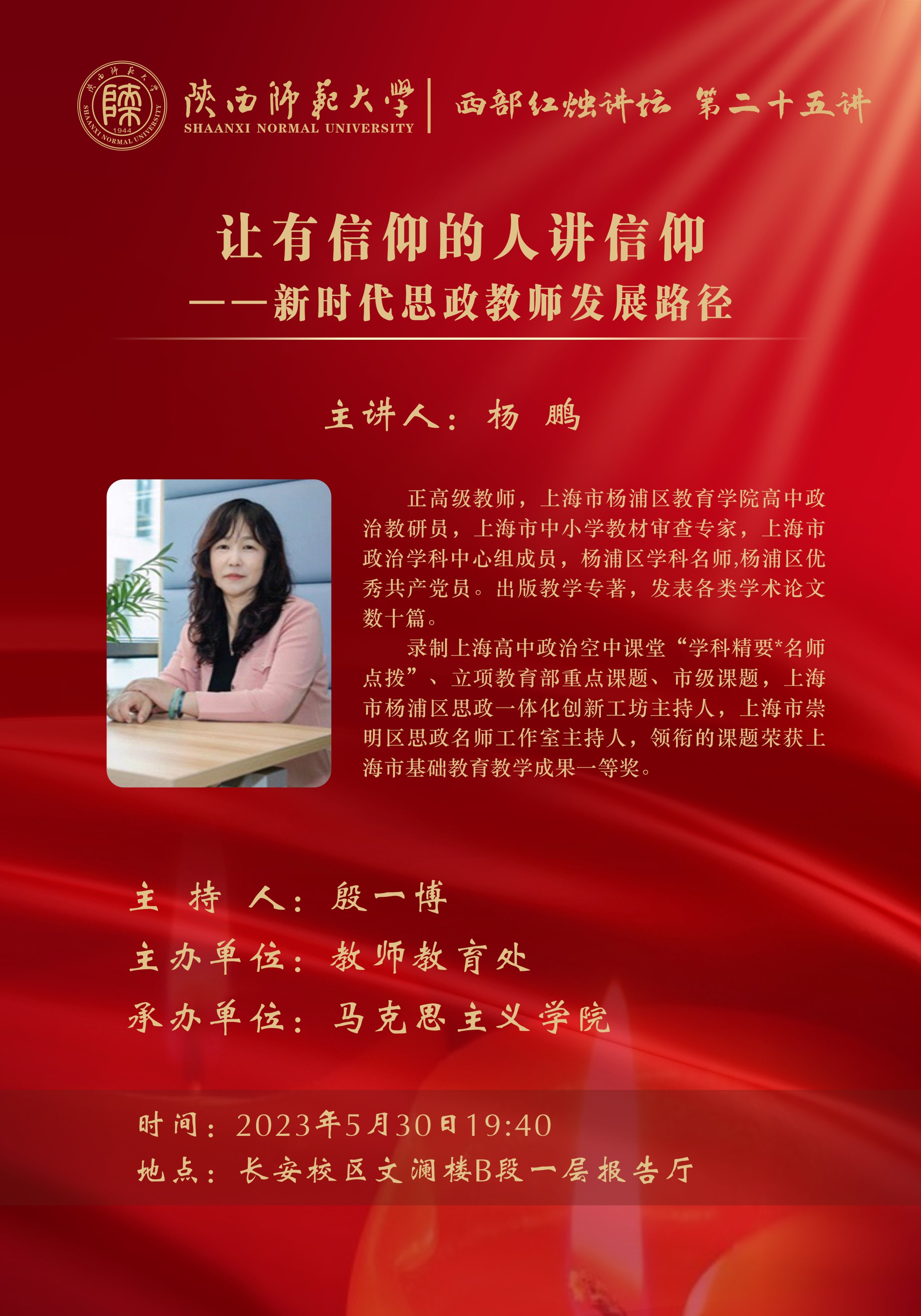 西部红烛讲坛第二十五讲——让有信仰的人讲信仰:新时代思政教师发展路径