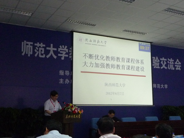 会上,华东师范大学、陕西师范大学、西南大学、首都师范大学、湖南师范大学、苏州师范大学、杭州师范大学及东北师范大学等8所院校作了大会发言。赵彬副校长代表我校作了“不断优化教师教育课程体系,大力加强教师教育课程建设”的大会发言,他从教师教育课程体系的优化、教师教育课程及资源建设、教师教育课程平台开发等三个方面介绍了我校教师教育课程建设的基本情况和成效,在会上引起积极反响。