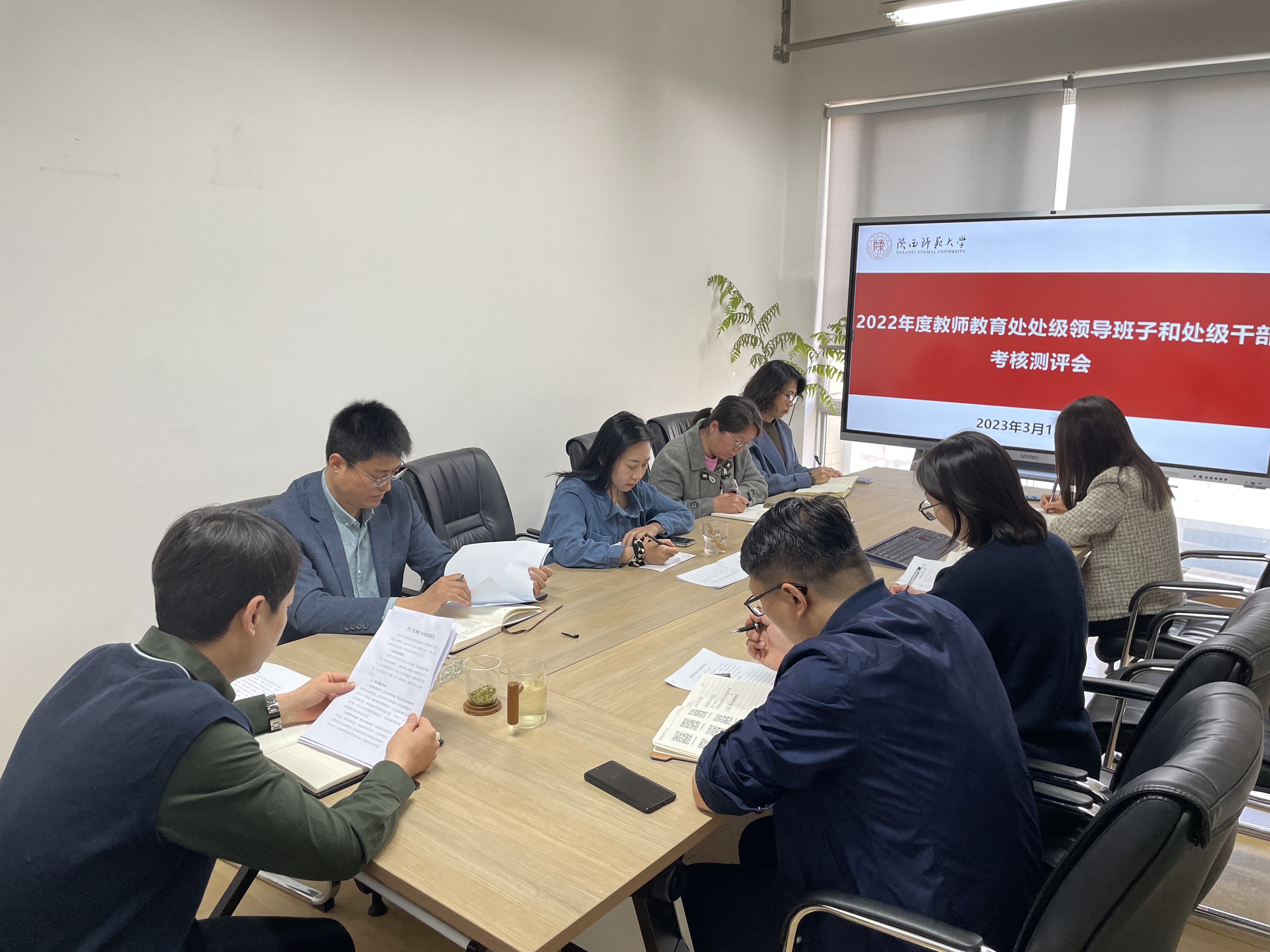 3月13日下午,教师教育处党支部召开2022年度处级领导班子和处级干部考核测评会暨基层党组织组织生活会,并进行党员民主评议。支部全体党员参加,会议由支部书记许广玺主持,。