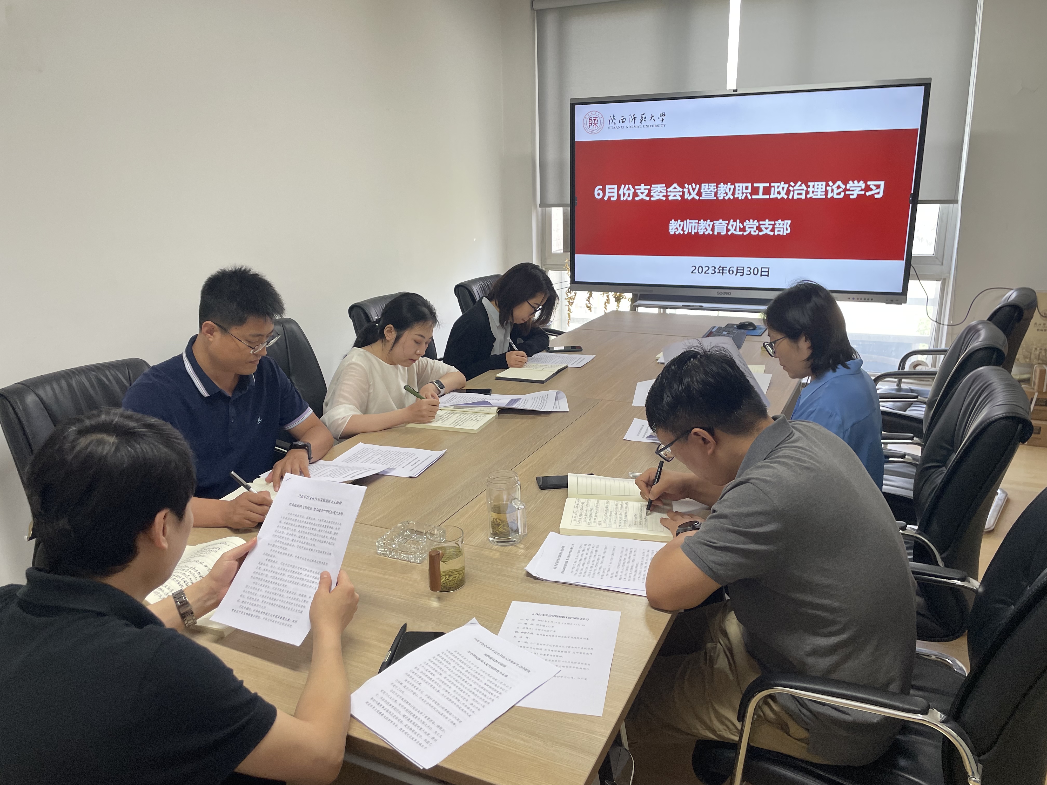 6月30日,教师教育处党支部开展6月份主题党日活动暨政治理论学习,支部全体党员及发展对象参加,支部书记许广玺主持。