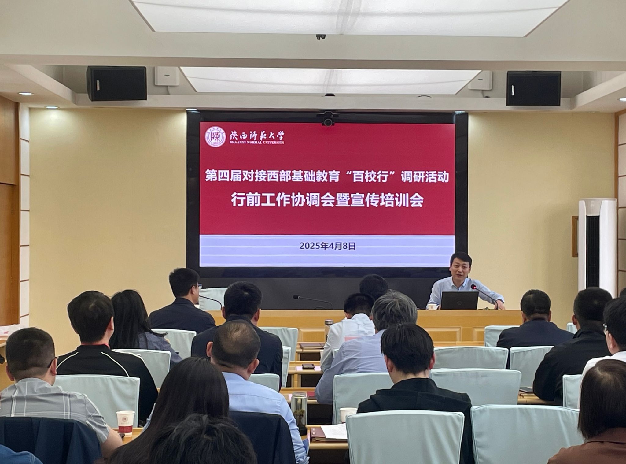 4月8日,第四届对接西部基础教育“百校行”调研活动行前工作协调会暨宣传培训会议在校务楼411会议室召开。党委常委、副校长陈新兵出席会议,相关职能部门、专业调研团队负责人、各调研组联络员及宣传员等参加会议,教师教育处处长许广玺主持会议。