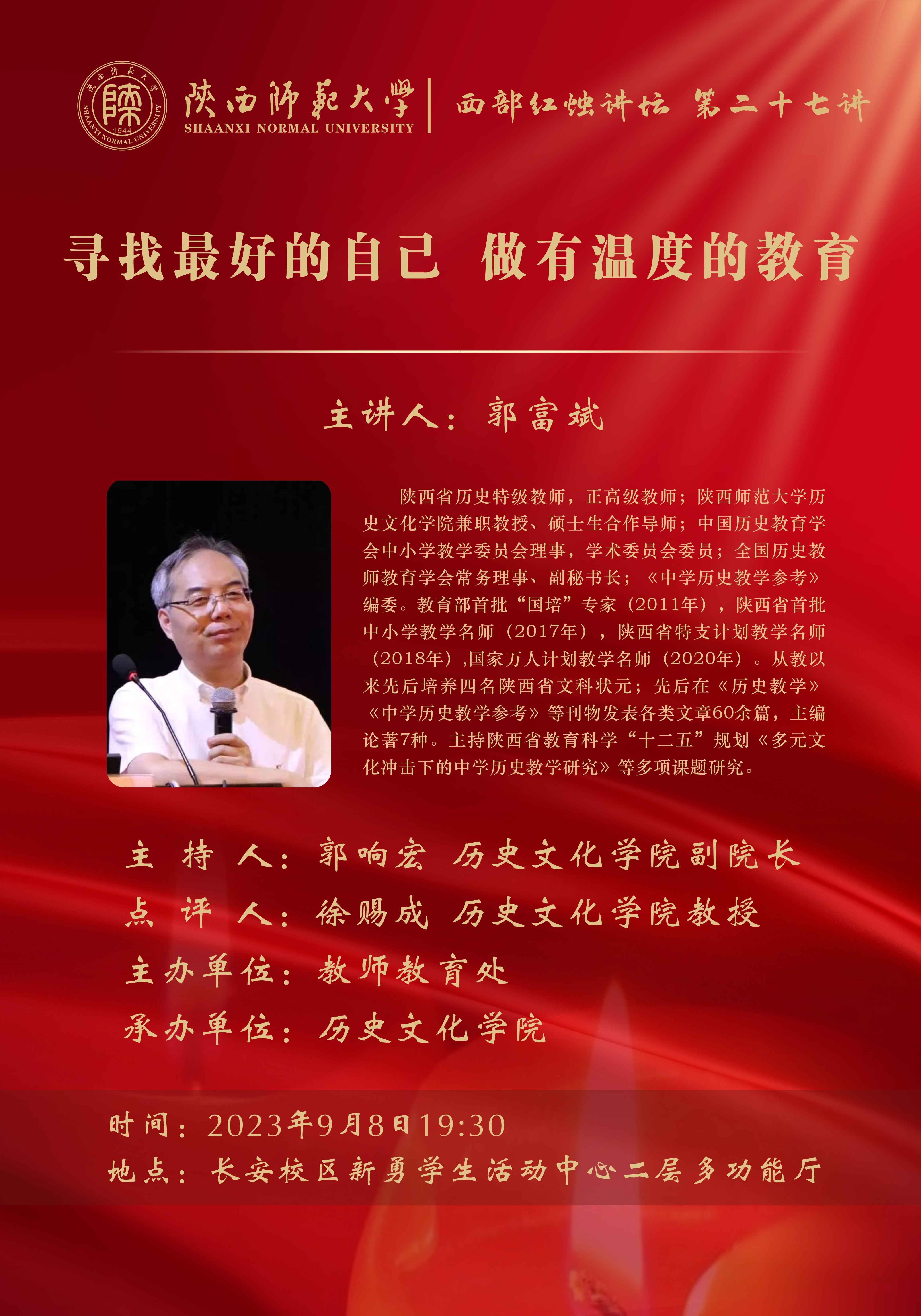 庆祝第39个教师节专题讲座暨西部红烛讲坛第二十七讲——寻找最好的自己 做有温度的教育