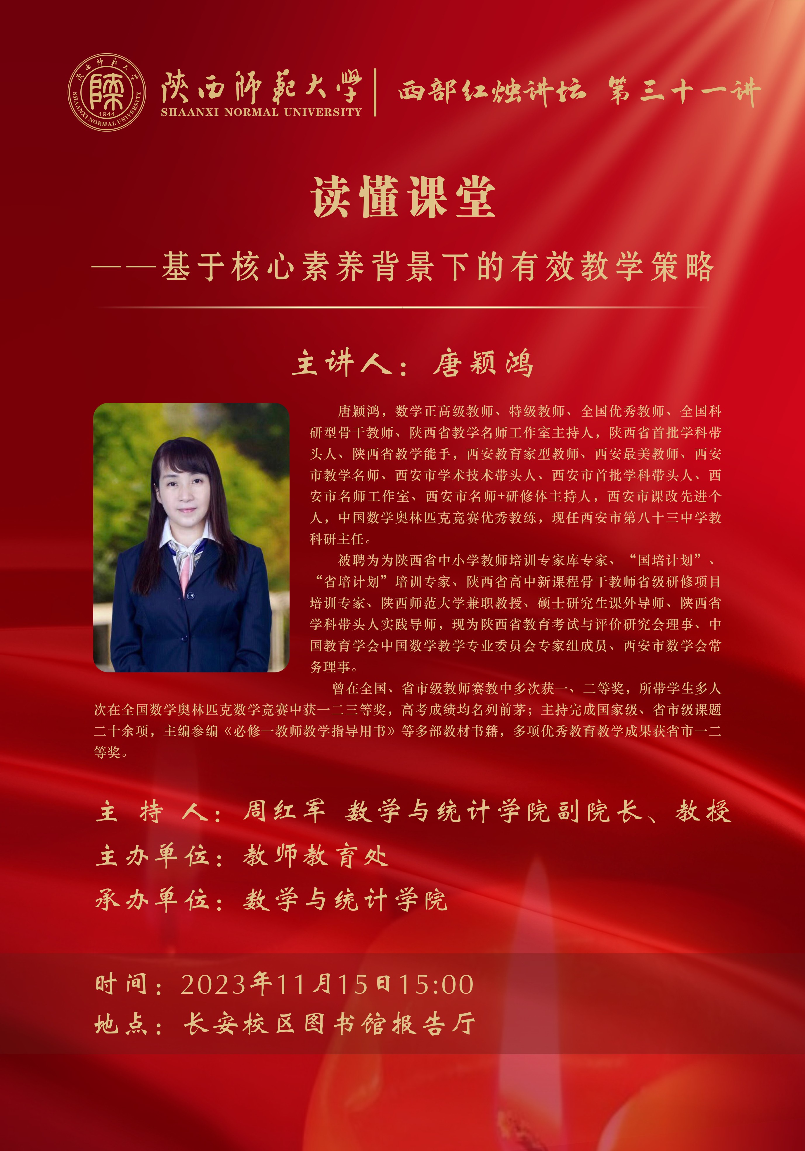 西部红烛讲坛第三十一讲——读懂课堂 基于核心素养背景下的有效教学策略