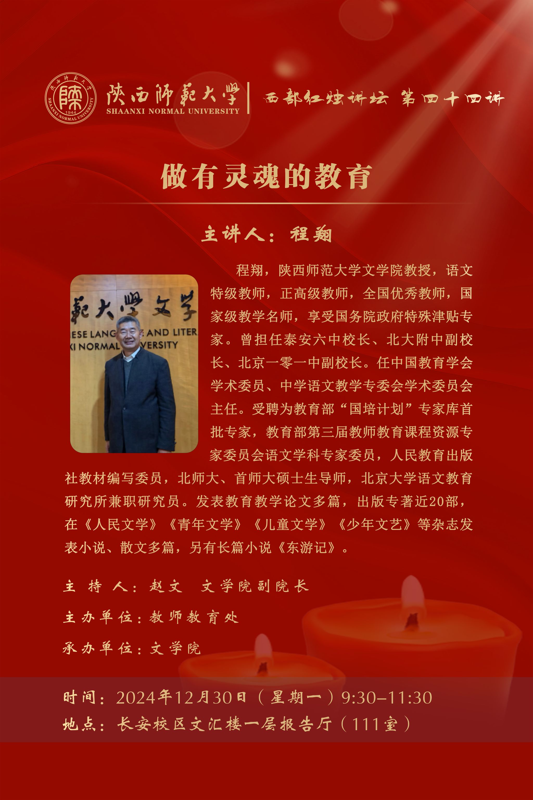 西部红烛讲坛第四十四讲——做有灵魂的教育